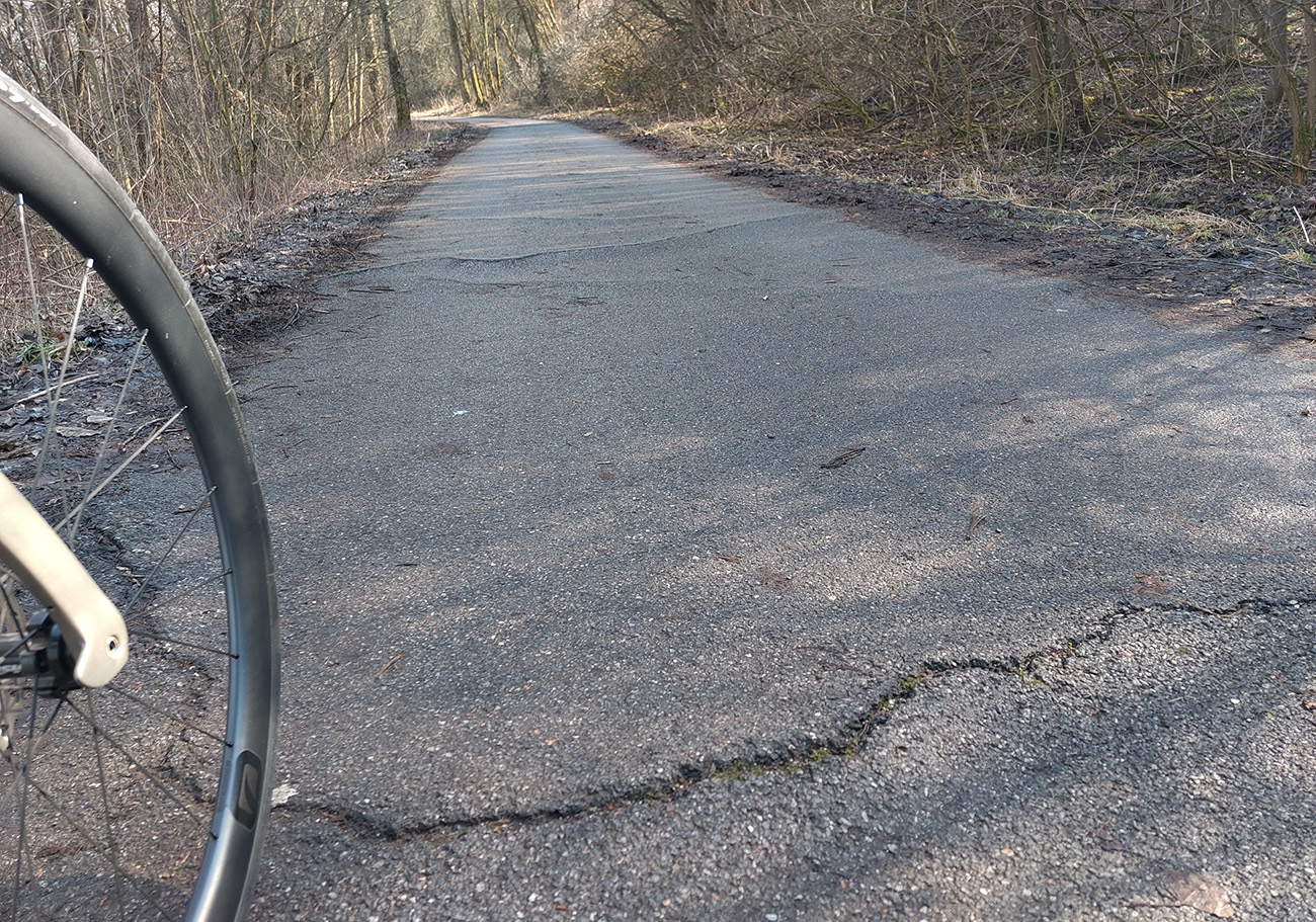 Potom už nekonečné roviny popri vode, s rastúcimi továrenskými komínmi v diaľke. A hustnúca premávka – všeeeetci sú tam, lebo je konečne príjemne teplo a ešte aj nedeľa. V lete budú na opačnej strane, lebo tam je viac tieňa. Niekde v polovici je možnosť skrátiť si okruh mostíkom na druhý breh, ale samozrejme valím až pod elektráreň.
