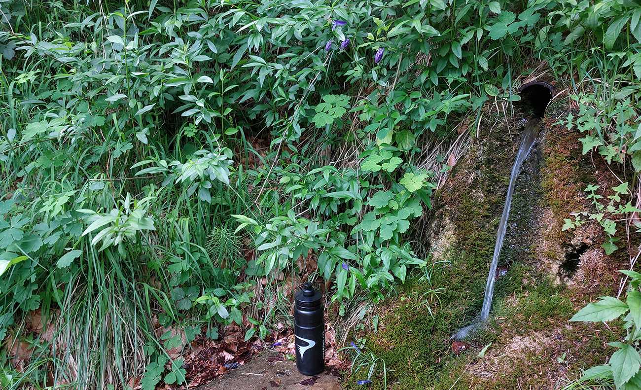 Zošup na druhú stranu, do Kľačna: tam už tiež treba dávať stále väčší pozor, najmä keď ten lesný slnečný stroboskop v rýchlosti ukrýva malé zákernosti pod kolesami - veď ako inak, na ťažko skúšanom asfalte hlavného ťahu. Aj premávka už predsa len hustejšia ako ráno a v bočnejších dolinách, no podarilo sa mi netrafiť nič a dobrzdiť odbočku, tak zase pokoj, skoro až domov. Lebo stúpanie do Vríčanského sedla je naklonené jemne, zatienené bohato a aj o studničkový pitný režim je tu postarané. Len tá čičmianska kofola nejako prestávala účinkovať, dotlačil som sa poslednými zásobami z vrecka dresu.