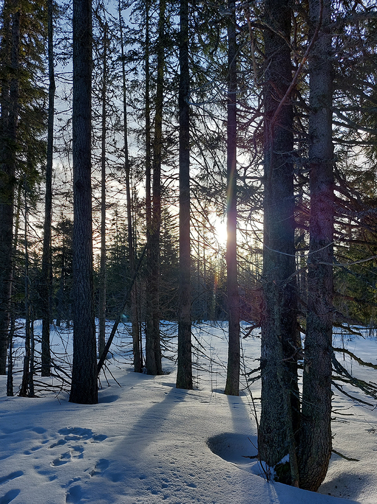 Že sme boli celkovo pomalší, neostal chuť a ani čas skúsiť niečo aj na druhom „brehu“ doliny. Ostával teda už len hravý, kľučkovací odjazd pomedzi kosovku. Mokvajúci sneh už miestami zadrhával, pod lyžami už ticho, ľady aj v lese dávno natopené, a od Popradského na Trigan sme to vzali pre zmenu komfortnejším letným chodníkom – aspoň boli výhľady. Na lyžiach potom až dole k asfaltke, aj keď za jazdy bolo niekedy ťažko rozoznať šišky od kameňov. Ale dali sme to bez jaziev.