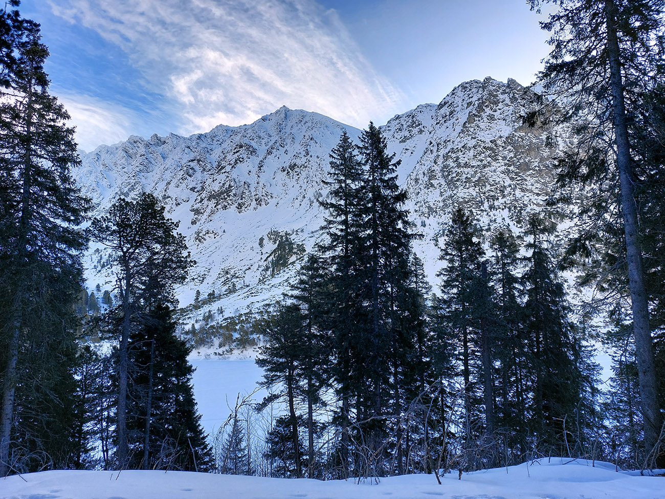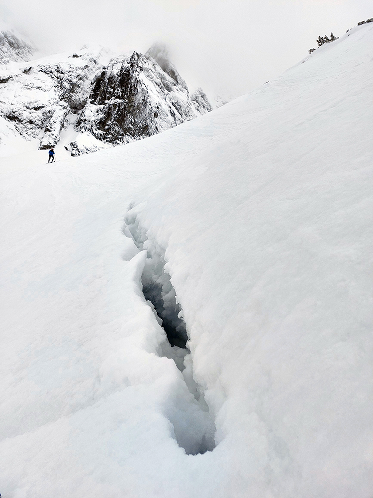 Táto superteplá zima núti ísť za snehom stále vyššie, ale stále sa dá nájsť aj ten dobrý. Tatry sú záchrana a teraz po prepršanom piatku a čiastočne aj sobote (aj vo výške Štrbského plesa) prišla jasná noc, tak sme ráno naskakovali do lyží pod Triganom (smer Popradské pleso) na betónový, viac hnedý ako biely, a poriadne hlučný podklad. Ale stále sa dá od smerovníka pri ceste. Zimný chodník (najmä zjazdík spod Triganu) ľadový, utrpenie pre pásy. Kúsok po ceste na Popradské ples – čistý ľad. Rachot spod lyží sa začal konečne zmierňovať až pri stúpaní lesom do Mengusovskej. A začali sa otvárať aj pohľady na čerstvé a poriadne veľké splazy až malé lavínky pod Patriou. Ktoré sa ale nedoplazili až na letný chodník, tak vyzeral byť bezpečný. Čo mohlo a malo, hádam už spadlo:
