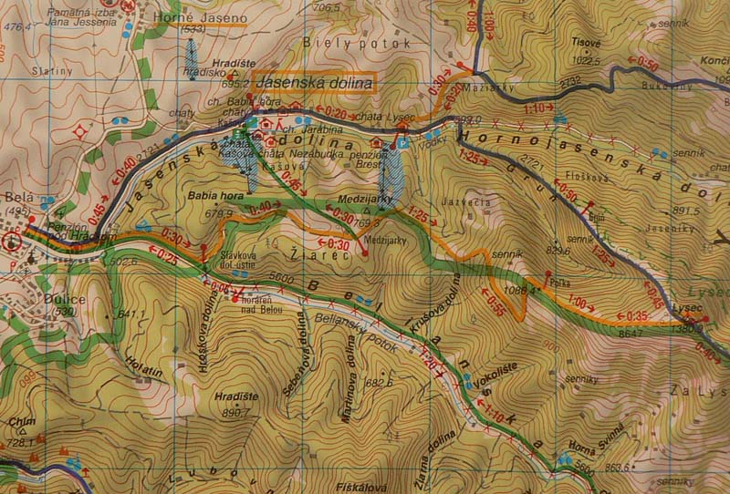 Štucne som ani nevytiahol, buď nebolo snehu ani nad členky, alebo zmrznuté pevné záveje. Ak sa to teda v najbližších dňoch definitívne všetko neroztopí, okrem dvoch úsekov v lese (Medzijarky – vlek na Lehote a kus zvážnice pod Poľkou) by sa to malo dať zvládnuť na lyžiach aj smerom dolu. Začať aj skončiť ale treba radšej na zjazdovke.