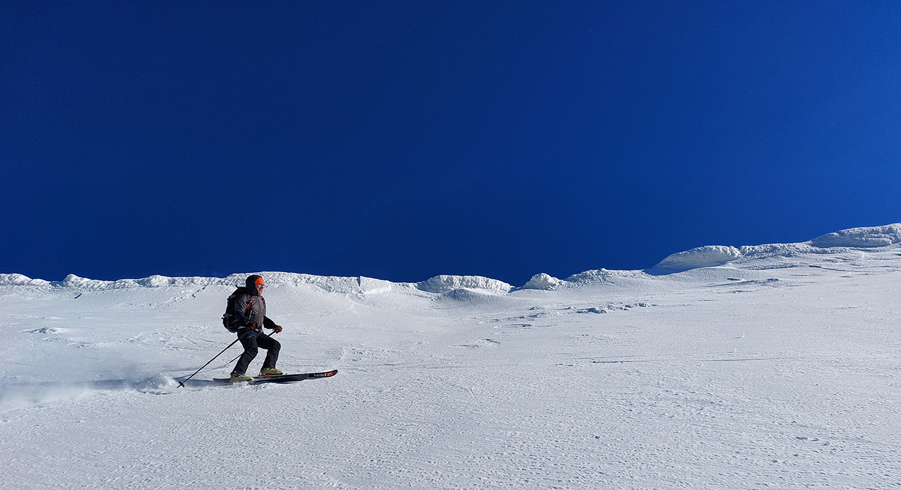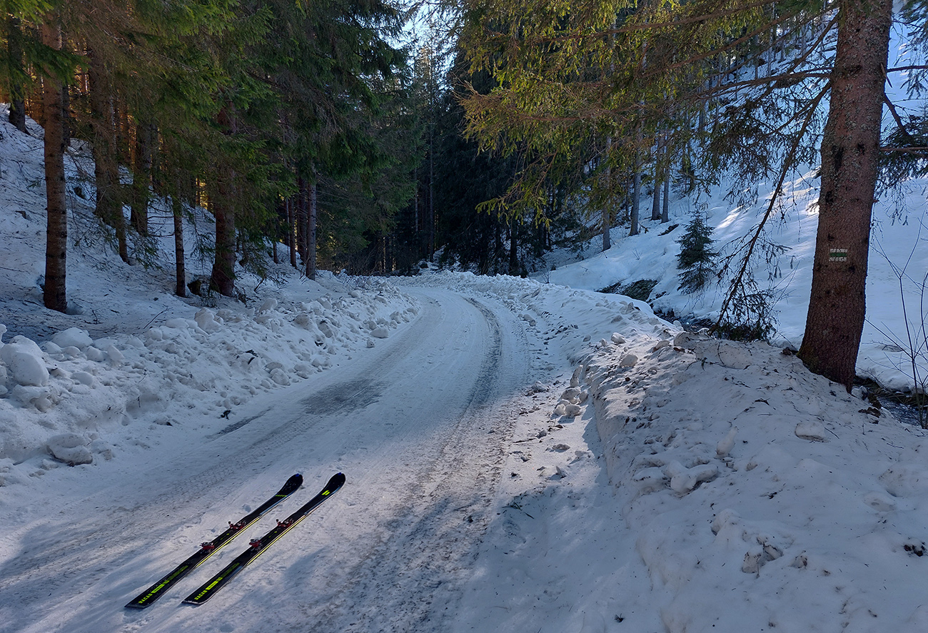 A to najlepšie na koniec. Na úvod konca síce skok cez ľadový prevej na drsný betón (úplne na vršok Latiborskej sme ani nešli), no ten sa po pár oblúkoch zmenil na parádny, konzistentný sneh, prechádzajúci až do takmer neuveriteľného, jemného, premrznutého prášku. A pretože tadeto veľa ľudí neprešlo, našli sme si aj my to svoje, nepočmárané. No rozkoš jednoducho neočakávaná!