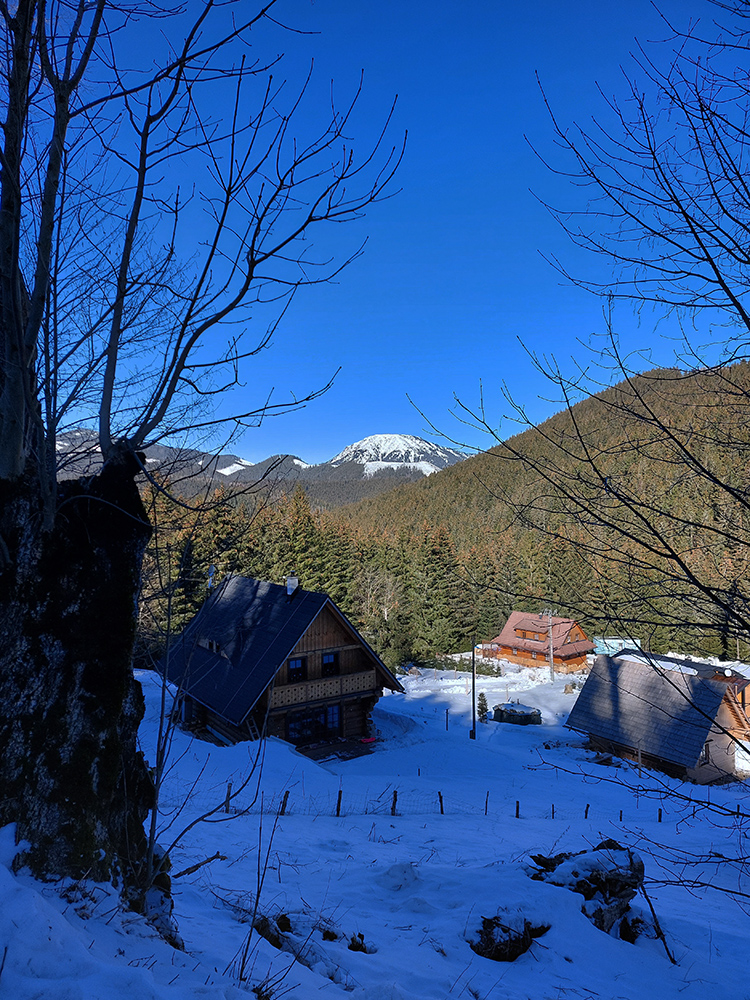 Odjazd popri potoku samozrejme očakávane komfortný, preleštený, snehu ešte dosť, zastavila nás až tá ťažba dreva na nižšej z dvoch polianok (U Báčika). Ale s tým už sme boli zmierení, poslušne sme vyzuli a netrvalo dlho, a už sme sa pod Prievalcom nakladali a tešili, ako po tejto odmene pre oči a nohy odmeníme aj hladné bruchá cestou domov niečím fajnovým. Vďaka za takýto modrobiely deň!