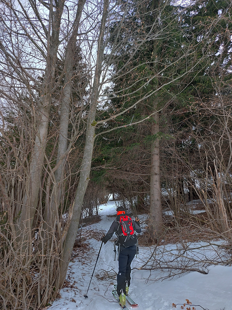 Traverzy lesom okolo Nemeckého vrchu už sú poriadne tragické - najmä na južnom svahu v závere, pred východom na lúku, lepšie ísť možno aj pešo ako na pásoch. Aj zopár poriadne „zúžených miest“ a špinavý ľad.