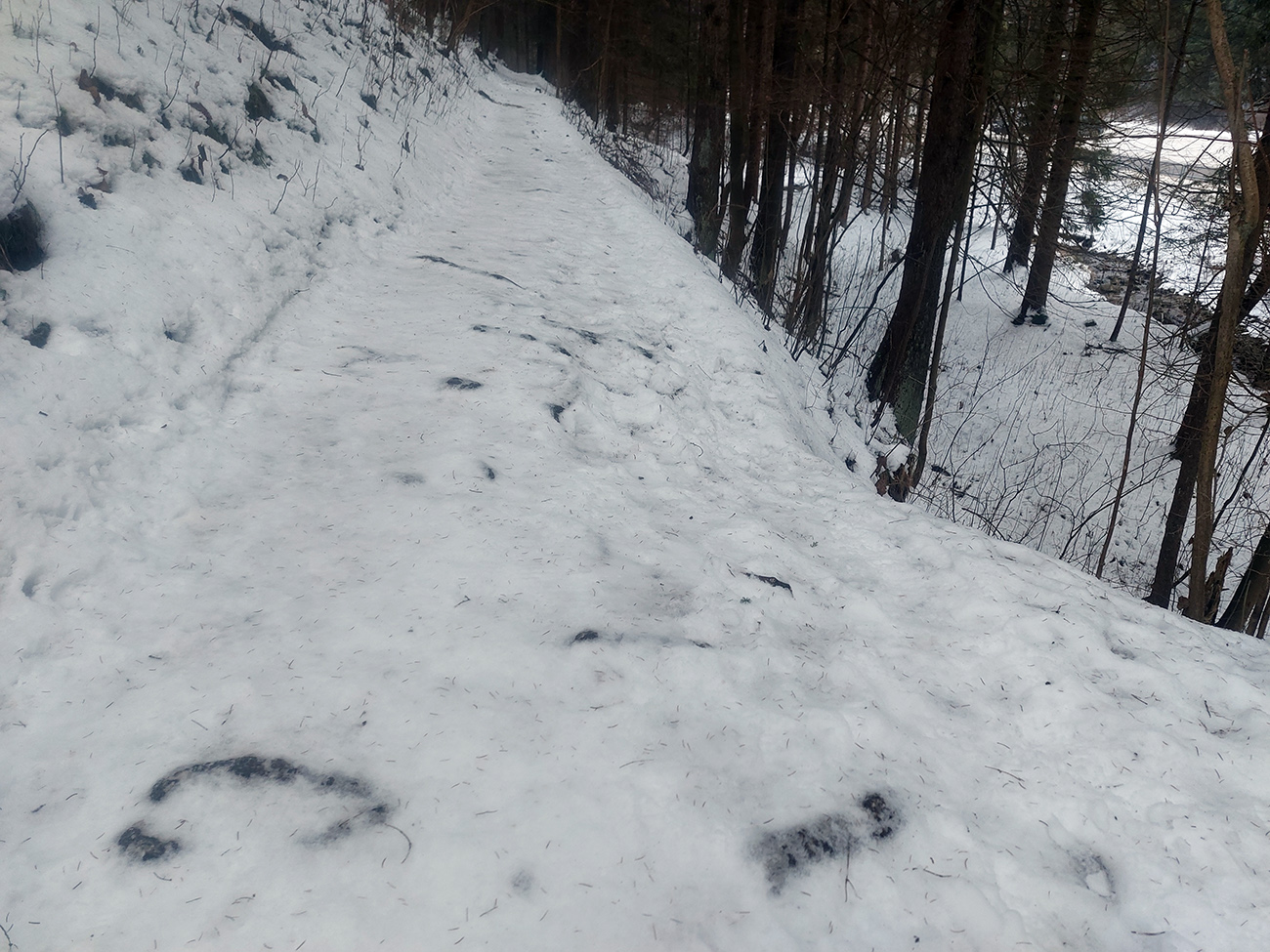 A ešte trochu času ostalo, tak som bol zvedavý na priechodnosť singlíka spod Vtáčnika k vrcholovej stanici sedačky. Aj tam len-tak-tak, na výšľap po tom poloľade to stačilo, smerom dole by bolo treba preniesť: