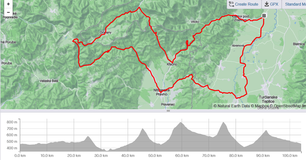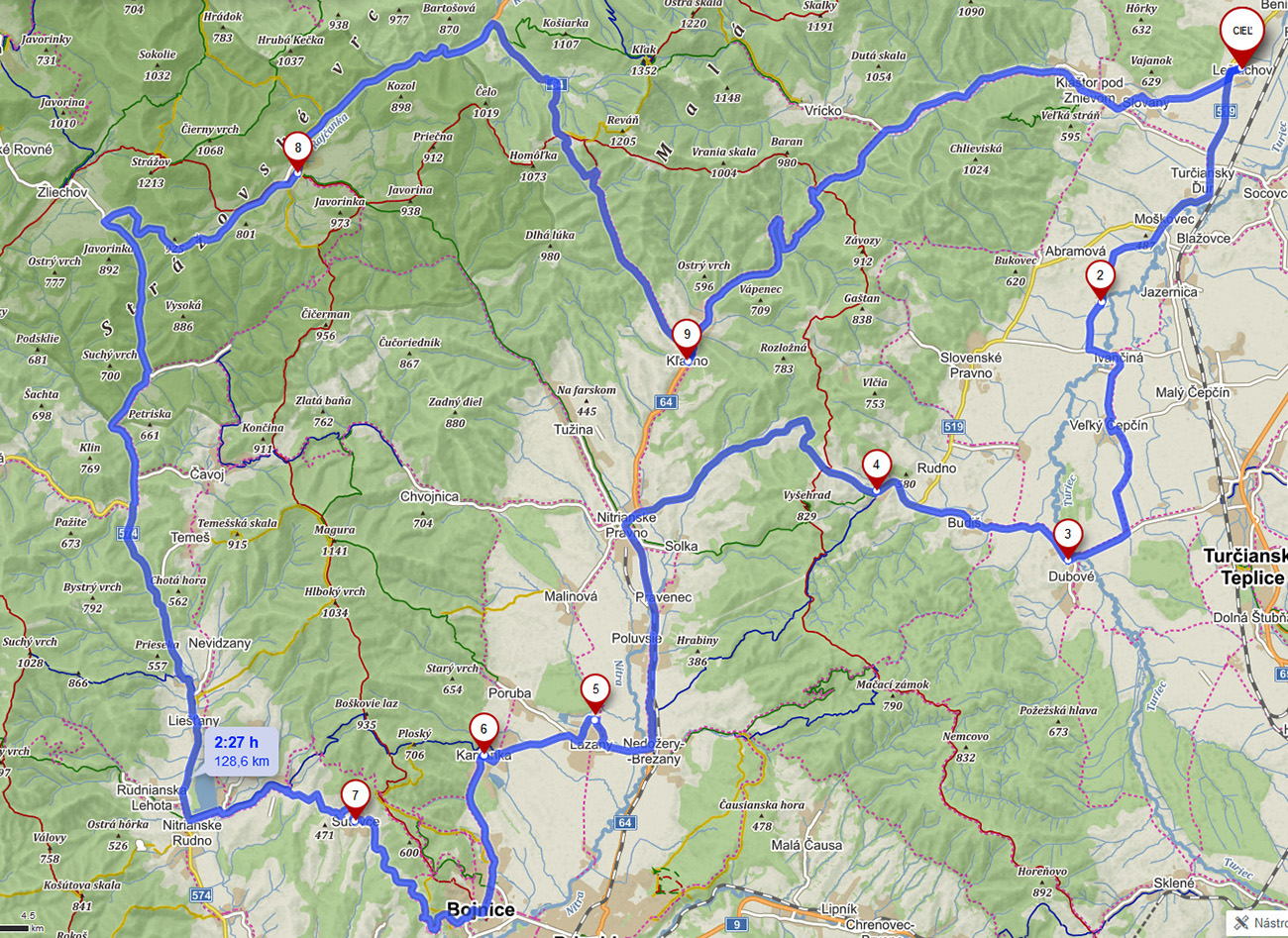 Menší najmä tvarom, lebo má so svojimi 104 km iba o nejakých 15 km menej ako ten klasický z Turca cez Vyšehrad, Bojnice, Zliechov, Čičmany, Fačkovské a Vríčanské sedlo nazad do Turca, ktorý miestni žiletkári aj pretekári poznajú isto dobre – z výjazdov a čiastočne aj z pretekov Slovenské Pyreneje (no tie už dlhšie neboli). Zreportovaný ho máme TU . Najmä cez víkendy tiché cesty, dobré asfalty a nie dlhé, zato výživné štyri kopčeky a v lete aj veľa tieňa. Jazdím ho už dlho, ale jeho možné skrátenie mi napadlo len asi tri roky dozadu, keď som v sedle Čičerman (pešo po červenej) križoval parádnu, takmer novú asfaltku. No čas zaexperimentovať prišiel až po tom, ako vlani v máji tú skratku medzi Tužinou a Gápľom vychválil Imroman na MTBIKERi . Teraz som sa tam vrátil druhý raz vo „výletnejšom tempe“ a s viacerými fotopauzami, nech je návod aj pre ostatných. Lebo Imroman síce vo svojom videjku podrobne spomína „kvalitu“ lesného asfaltu a šotoliny z Tužiny hore do sedla, ale super-bomba-mega asfalt zo sedla dole do Gápľa, hladký ako detská ritka, akosi zamlčiava :-) A o ten práve ide, a preto v tomto smere, a nie v opačnom. A je to plus jeden kopček k tým štyrom, tá skratka.
