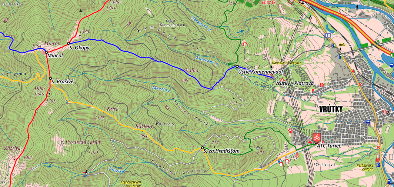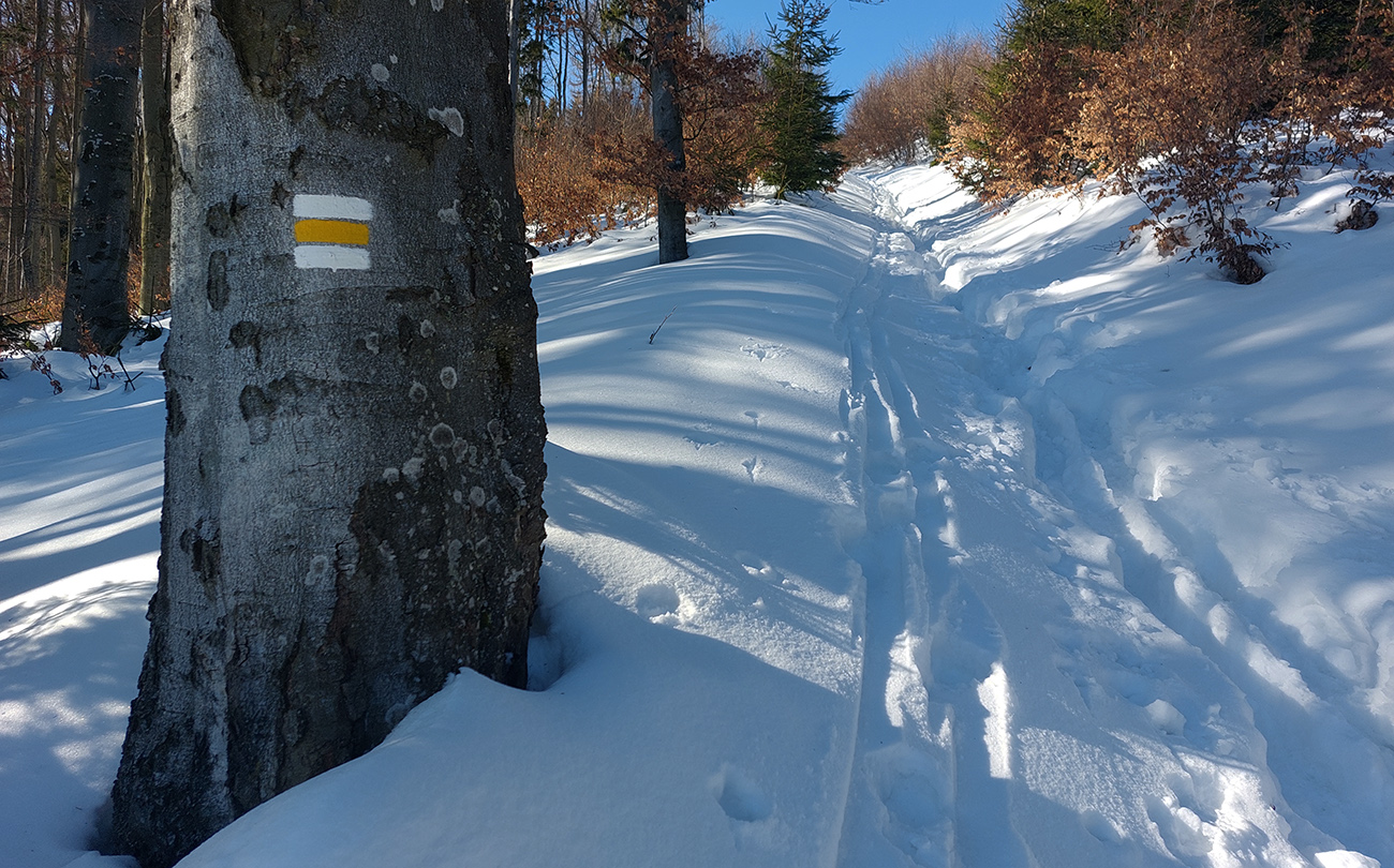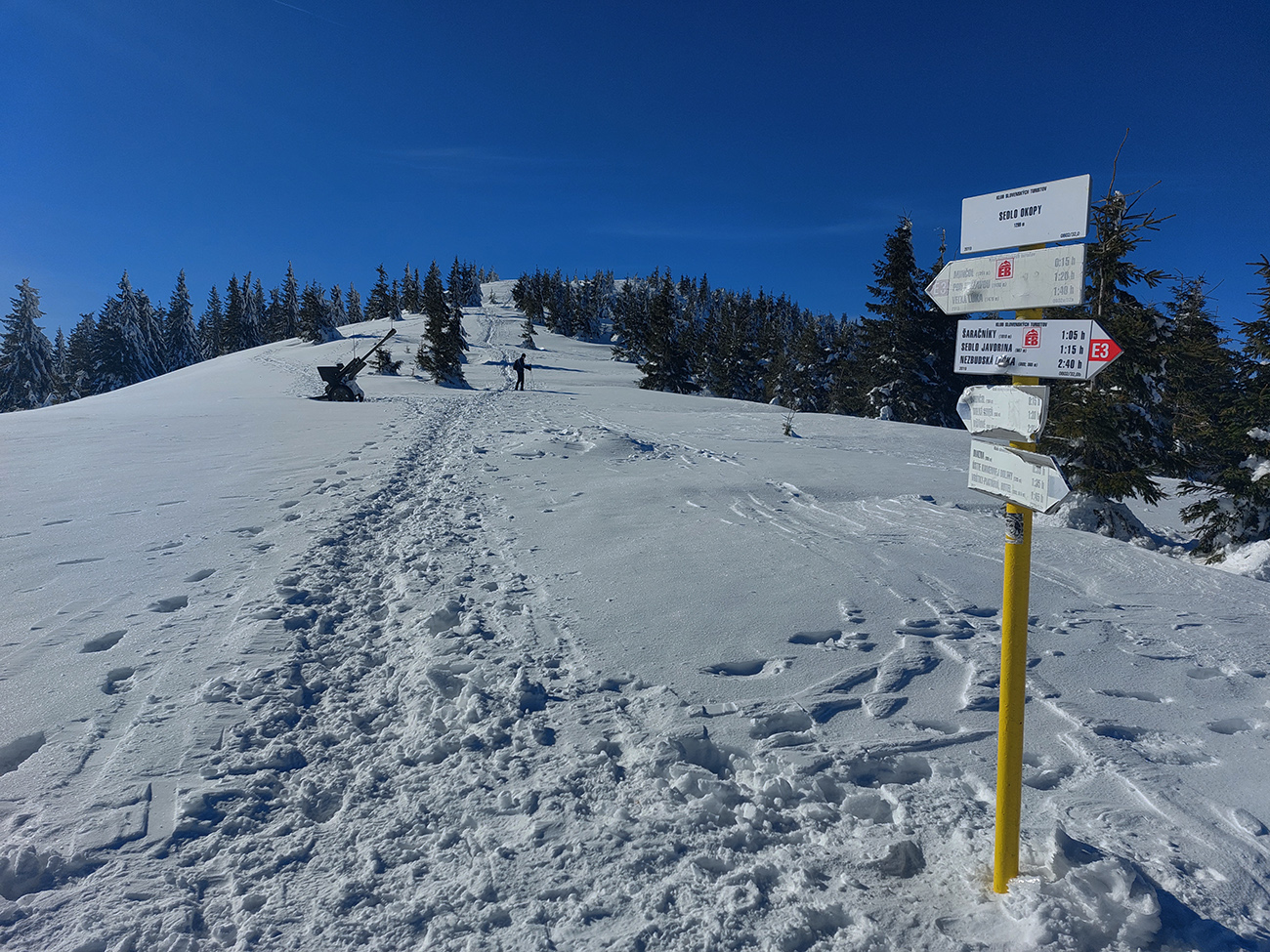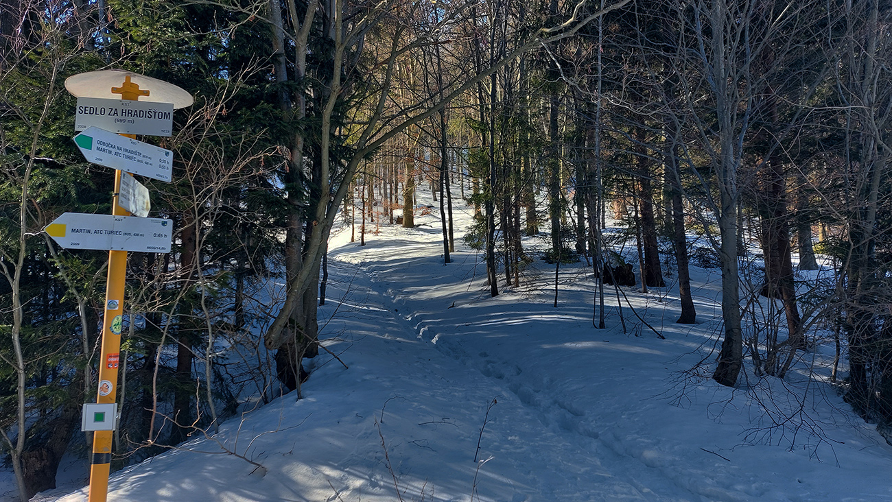 Takže kto sa teraz nechce tlačiť s davmi na serpentínach zo Strání na Hole, vrelo odporúčam žltú aj modrú na Minčol z Vrútok. Na to, ako je dole v meste málo snehu, dajú sa obe farby nie že pohodlne vyšliapať, ale dokonca aj bezpečne zlyžovať prakticky „od emhádé k emhádé“, alebo ako hovoríme my inteleguáni „kártukár“ :-) Na žltej dokonca aj nižšie. Čo počas kalamity napadlo, zvlhlo, sadlo a zmrzlo, ale cukor kryštál nehrozí. Takže žiadne prebáračky, lyže ledva nejakú stopu zanechávajú, A pešiaci už majú svoje brázdy, tak neprznia tie lyžiarske (väčšinou).