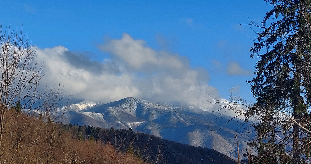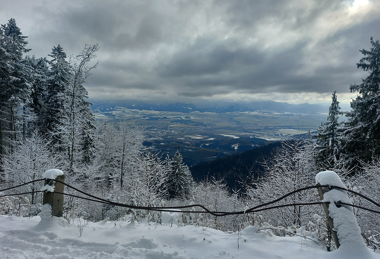 Ani nie skimo aktuál, to už by som musel byť poriadny zúfalec :) Len tak, na ochutnávku pár modrobielych fotiek pre radosť. U nás sa hovorí, že až tretí sneh vydrží, ale po skúsenostiach z minulých zím, kde brutálny vianočný odmäk stopil všetko a začínalo sa odznovu, treba brať čo príde, že? Takže predpovedané prvé poriadne sneženie tejto sezóny od 20. novembra čakali všetci premotivovanci. Prišlo a odstavilo horské prechody od Donovál na východ, lebo to išlo od juhozápadu. Malá Fatra mala smolu, len ju to tak lízlo. Ale čosi pocukrilo, odhadom 10 cm. Oblaky sa mali pôvodne na dlhšie pretrhnúť až v nedeľu, lenže zvlnený front je nepredvídateľná potvora – a nechoď opáčiť aspoň najbližší kopec, keď sa v sobotu ráno zobudíš do takéhoto výhľadu: