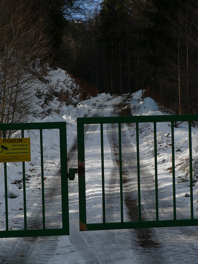 Kto by chcel ísť hore z nižšieho sedla pod Hradišťom, tam je samozrejme parkovacieho miesta viac. Cesta za bránou prehrnutá až na hlinu, ale stredom sa dá a za zákrutou sa podmienky rapídne zlepšujú, aj keď tade teraz asi nešiel nik - žiadna stopa.
