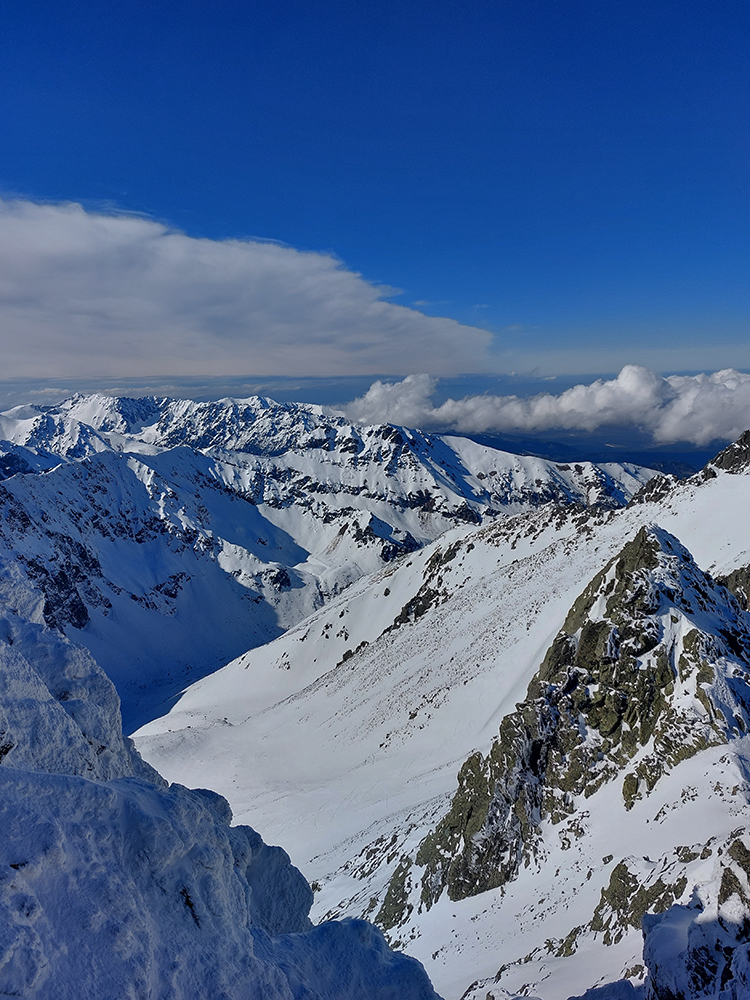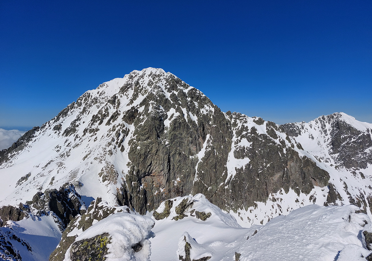 ...samozrejme aj s cestou k nej, pešo aj na pásoch, v sobotu deviateho marca. Teda MSD – Priečne – VSD, s krátkou zachádzkou na Širokú vežu - tatranská klasika, odporúčaná teraz najmä v tomto smere. Lebo aj to v partii zaznelo, že ešte sme sa v tejto sezóne so snehom poriadne nezvítali, a už aby sme sa aj lúčili. Tragicky teplá zima je neľútostná a opačným smerom by to bolo od Zamky po Hrebienok (slušne povedané) jemne nepohodlné. Veď na fotkách vidno.