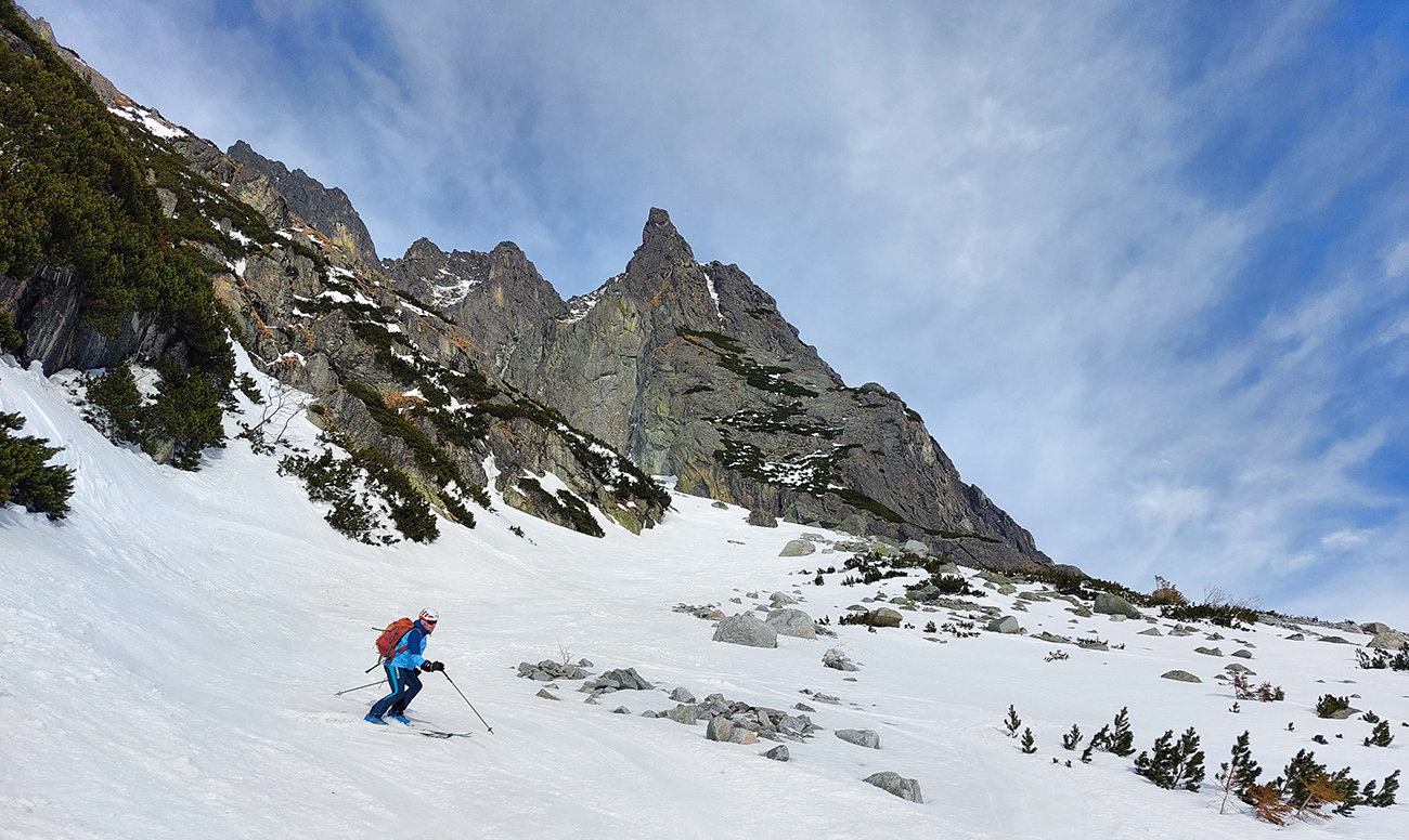 Nasledovala kľučkovacia zábava v kosodrevine, kde lyže ešte stačili vykrajovať zákruty. Na rozdiel od Húpačiek, kde bolo treba prezuť korčule. Ale kto využíval danosti rozvlneného reliéfu, vyšantil sa aj tam. S trochou sebazapretia a potlačenia palicami sa dokonca dalo na lyžiach dostať až na Rázcestie nad Rainerovou chatou a po opatrnom prekráčaní jednej skalnej pasce bez vyzúvania až dole na Hrebienok. Ale to sa asi rýchlo bude meniť k horšiemu, ako vidno v predpovediach počasia.