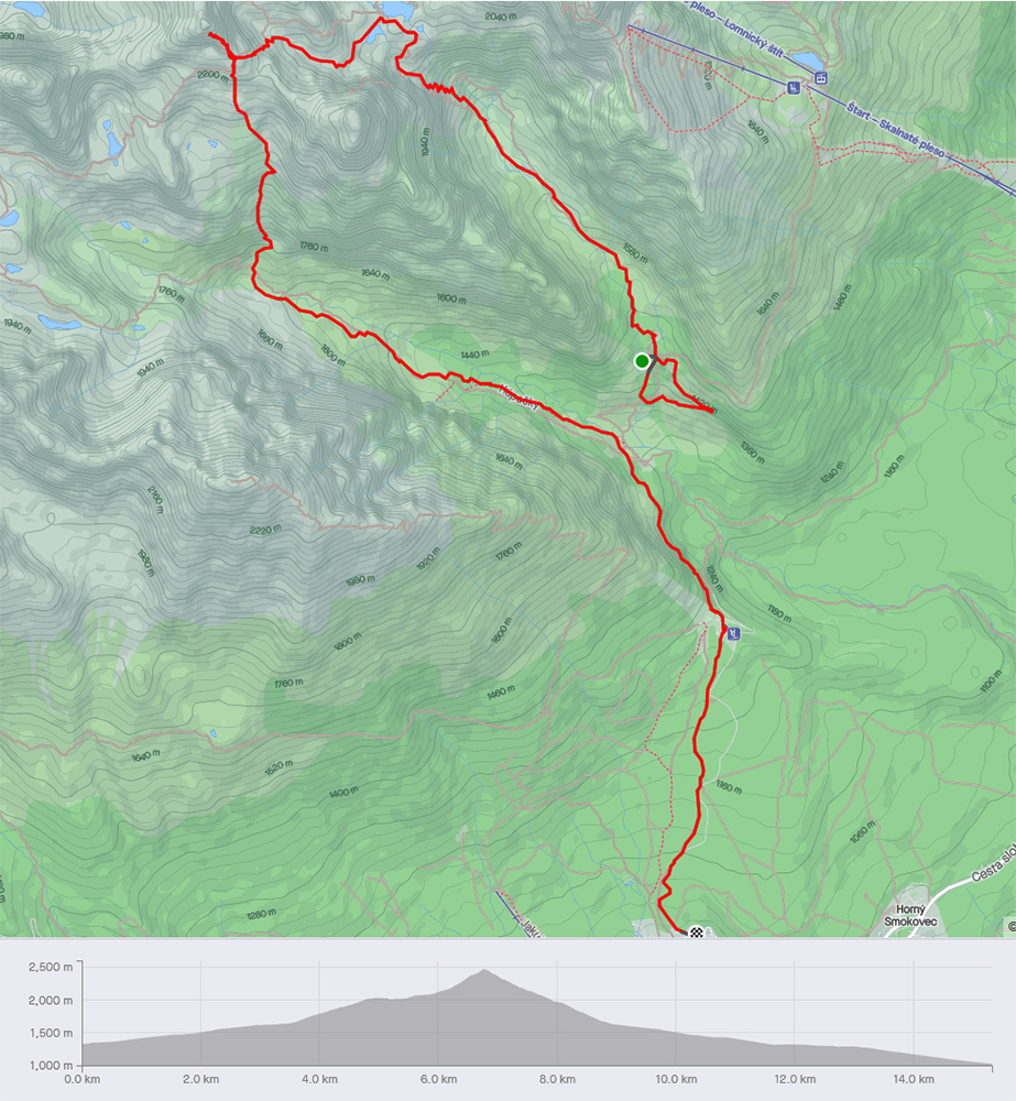 Ale po poriadku – zliezli sme sa na parkovisku v Smogovci poriadne stádo, zaplatili výpalné (pardón parkovné) a v družných debatách ubehla tá pešovačka - potkýnačka hore na Hrebienok celkom rýchlo. Ani blato nebolo, to sa cení, len poriadny hic. Nad kotlinou za ami sivá pernina, nad štítmi pred nami ažúro, črtal sa konečne jeden pekný víkendový deň. Snehovo a teplotne typicky májový. Hodinky som samozrejme zapnúť zabudol (až nad Zamkou mi doplo...), ale tam to každý pozná, tak len videjko od relive: