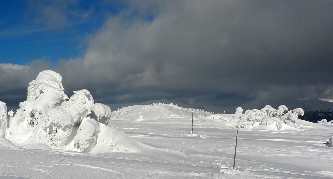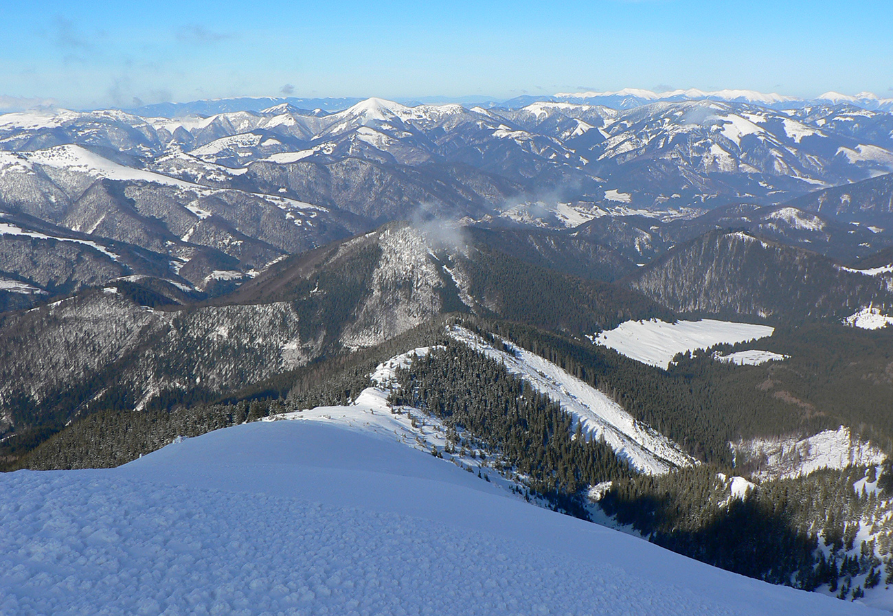 Po arktickom počasí sa zase dovalil hnusný odmäk, no prvé dni ešte vo vyšších polohách moc neuškodil. Naopak – aj dobre spravil, keď prilepil k zamrznutému podkladu nový sneh. Šialená zima, ako na hojdačke... Ale čo už. Šiel som teda vyskúšať tie vyššie polohy masívu Prašivej. Mal som viac variantov „denného programu“ podľa toho ako nohy pôjdu. Rýchlo sa ukázalo, že nejdú vôbec, tak som to nehnal po hrebeňovke, ale ostal som tam polyžovať. A dobre som spravil a nebol som sám – na starom ľade taká hutná, vetrom a už aj slnkom ubitá vrstva nového snehu, do 10 cm. To na juh. Od hrebeňa až do lesa takmer žiadny ľad. Len na hrebeni miestami trochu tvrdšie šindle, strungy, kto to už ako volá. Severy samozrejme tvrdé, vyfúkané, hrboľaté, tam som ani nešiel. Ale po nedávnom lavínovom poplachu ani stopy.