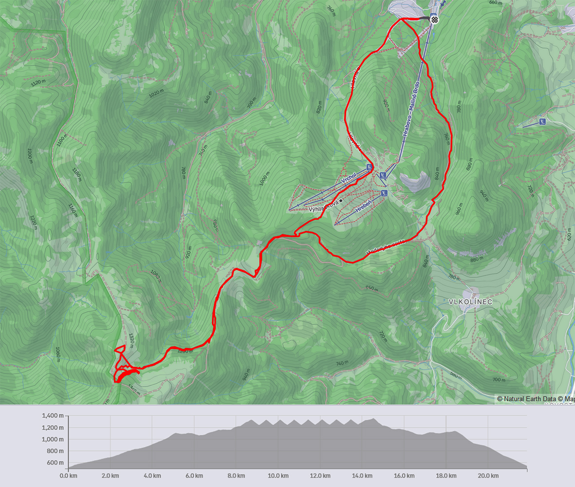 Aj voda poruke k obedu, aj som nakoniec vlhké pásy vymenil za suché, keď už voskovanie nepomáhalo, a naposledy som si ešte z povinnosti vyskúšal muldu vedľa, skoro celú na slnku, až zhora, z vyhliadkového kopčeka na červenej značke. Nejaké staré oblúky tam boli, tak že pridám svoje. Ale bolo to zároveň aj navlhnuto ťažké, aj krustovité, no takmer hnus, nič moc zážitok. Až dole v tieni pár práškových oblúkov na vylepšenie záverečného pocitu.