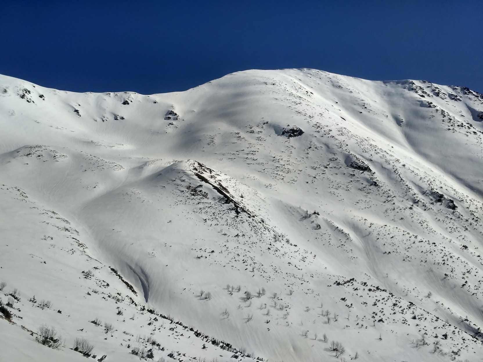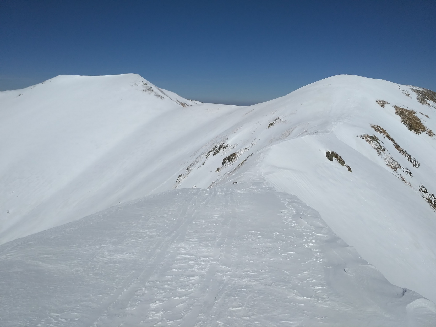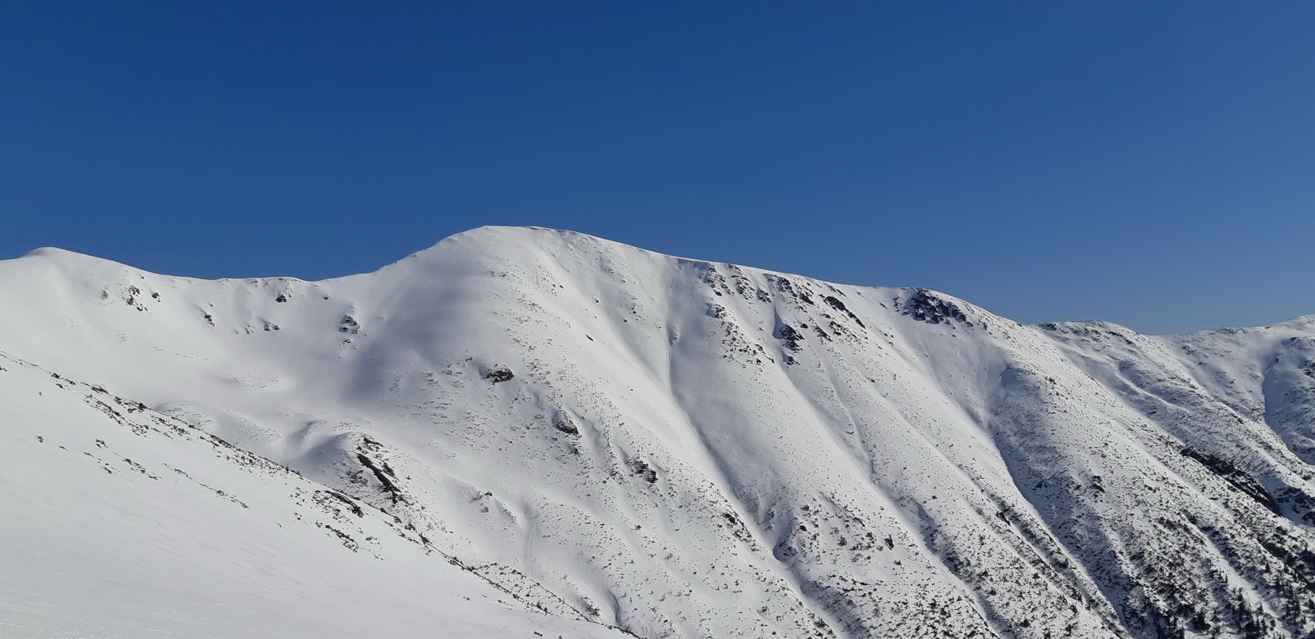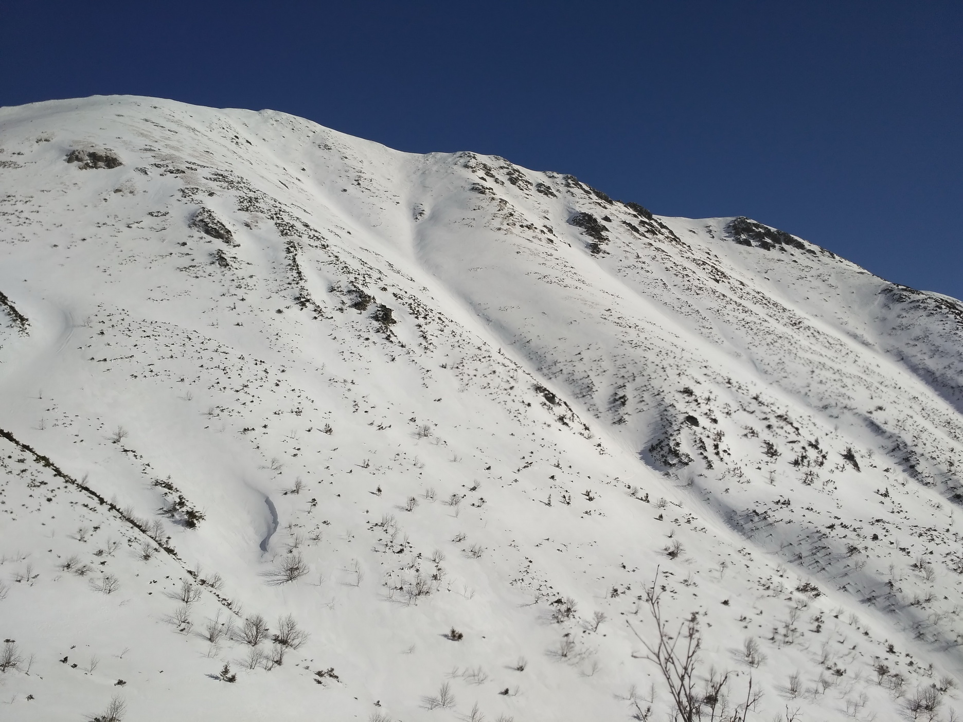 Som na vrchole znova udivený ďalším špecifikom Skalky - priestrannosťou. Len ťažko na Slovensku nájdete prírodné futbalové ihrisko vo výške 2000 metrov. Napriek rozložitému vrcholu však Skalka rozhodne nie je jednotvárna "buchta" a hlavne jej divoké severovýchodné úbočie ponúka viaceré línie na hranici extrémov. Do jednej z nich už dlhšie zvedavo nazerám, zatiaľ však nemám šťastie trafiť ju v podmienkach.