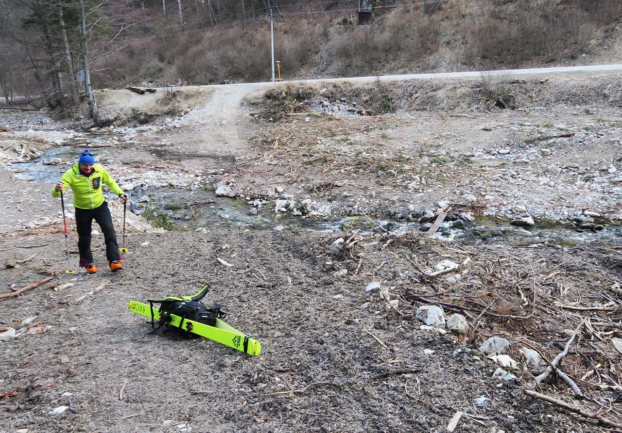 Asi 50 výškových od hrebienka sedla Kraviarske zapíname do lyží,ťaháme sa kus vľavo od smerovníka a takto pohodlne,síce s haršajzňami,lebo severy,si cupkáme v miernom ale celkom štipľavom vetríku na hlavný hrebeň do sedla Bublen a myslíme si,že takto budeme pokračovať až na Malý Kriváň.Na hrebeni prekvapenie,snehu niet a treba nosiť.Aj po trávičke aj po blate a skale.Pár úsekov ideme aj na pásoch,ale veľmi málo.Cestou obzeráme podmienky na nami zamýšľaných zjazdovkách,pričom prvá vedie z malého Kriváňa kúsok jeho južným chrbtom a potom zatáča v smere k svojmu väčšiemu bratovi.Druhá potom z jeho východného výbežku.Snehu je tam dostatok.Slniečko naberá na sile a miestami vyzliekame a naopak,v závislosti od toho,čo nám dovolí severný vetrík.