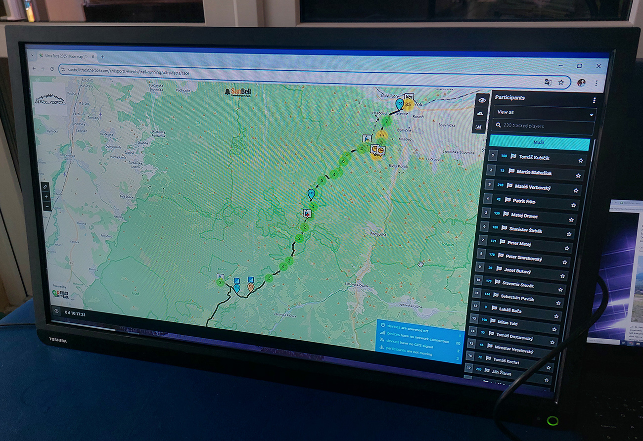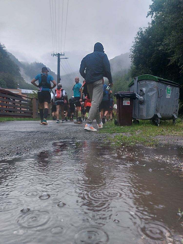 V cene štartovného bola (ako už tradične) aj balneoterapia, takže na boľavé nohy sa nemohol sťažovať ozaj nikto. Ale kedy vlastne bolo na Ultra Fatre normálne počasie? Blatko pod Japeňom bolo tento rok z oboch strán exkluzívne, čo bolo vidieť aj na mnohých zadkoch hneď na prvej kontrole v Starých Horách. Tam sa čelo pretekov dovalilo v maličkých rozostupoch v poradí Kubičík – Oravec – Blahušiak – Frko – Verbovský, ale až na budúceho víťaza, ktorý išiel systémom štart – cieľ, sa to za ním aj kvôli búrke trochu premiešalo. Dievčatá v poradí Líšková – Koniarová – Brašeňová išli od štartu za sebou ako dohodnuté.
