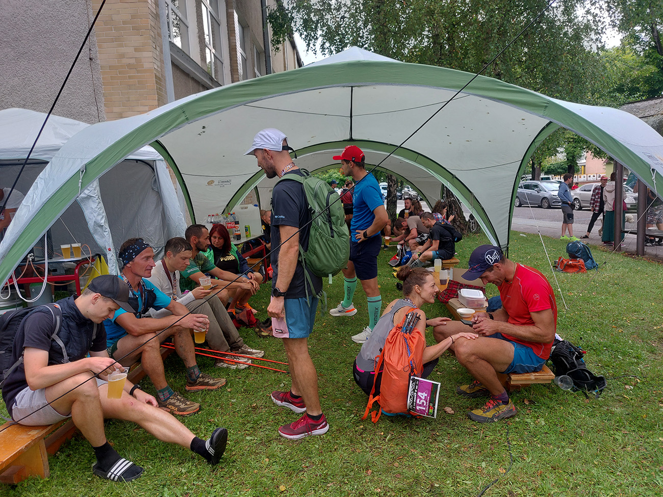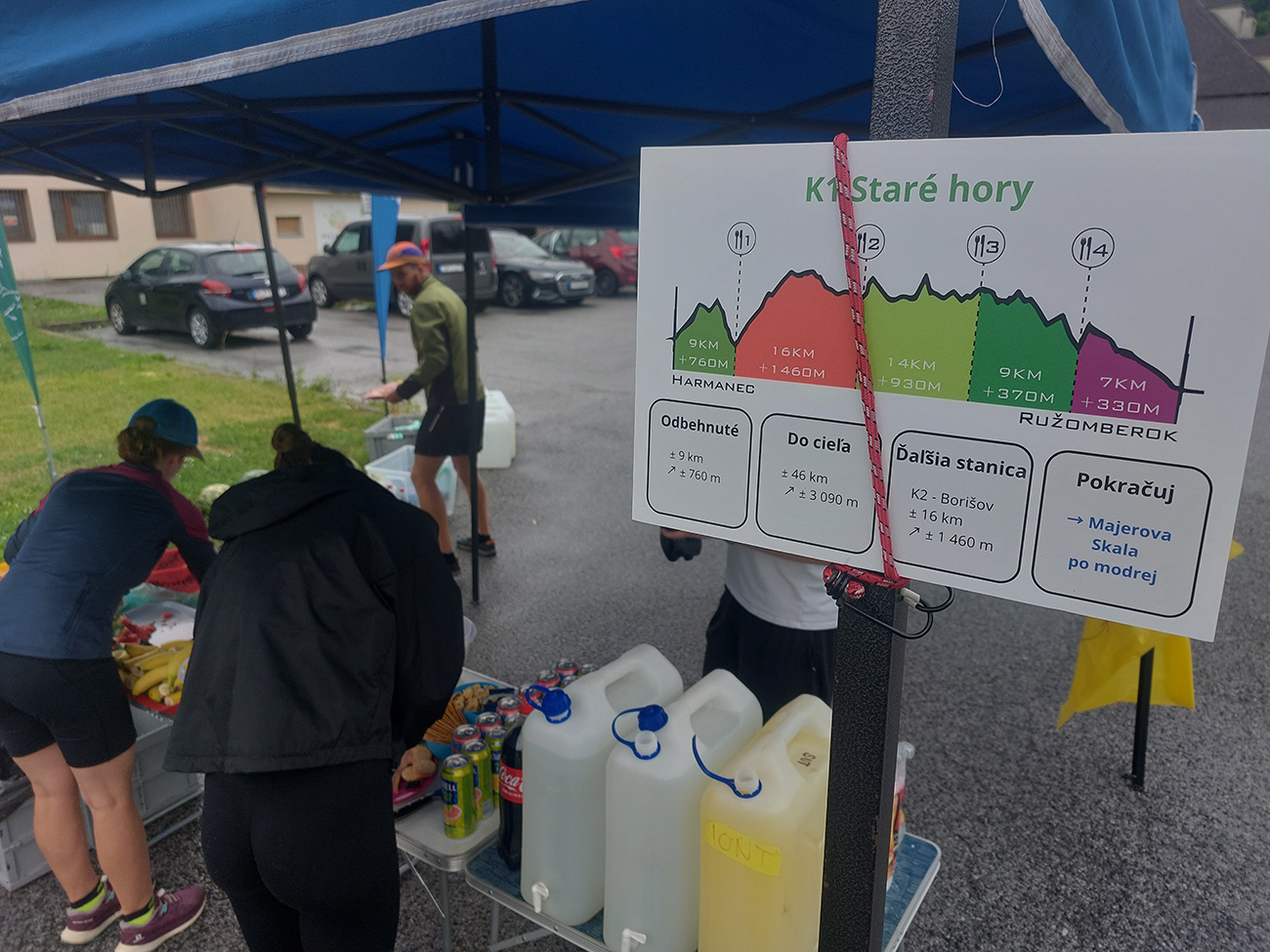 Ale od začiatku poďme... Predpoveď dobrá nebola, ale zas nemala byť zima, a ani nebola. Cestou na štart zhora poriadne polievali, takže všetky prístrešky okolo harmaneckej lesnej správy obsadené, aj prázdne kôlne a chlievy. Štartovka samozrejme dlho vopred vypredaná, a napriek nejakým tradičným DNS bol pod štartovou bránou o siedmej takmer plný stav. Ani v cieli potom nebola (podľa výsledkov, ktoré sú TU ) nejaká extrémne veľká úmrtnosť, takže napriek tým búrkam pohoda.