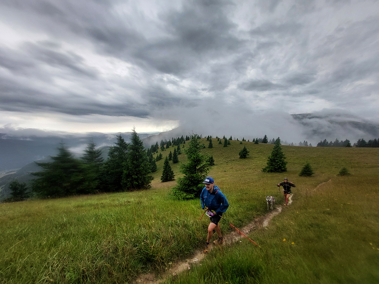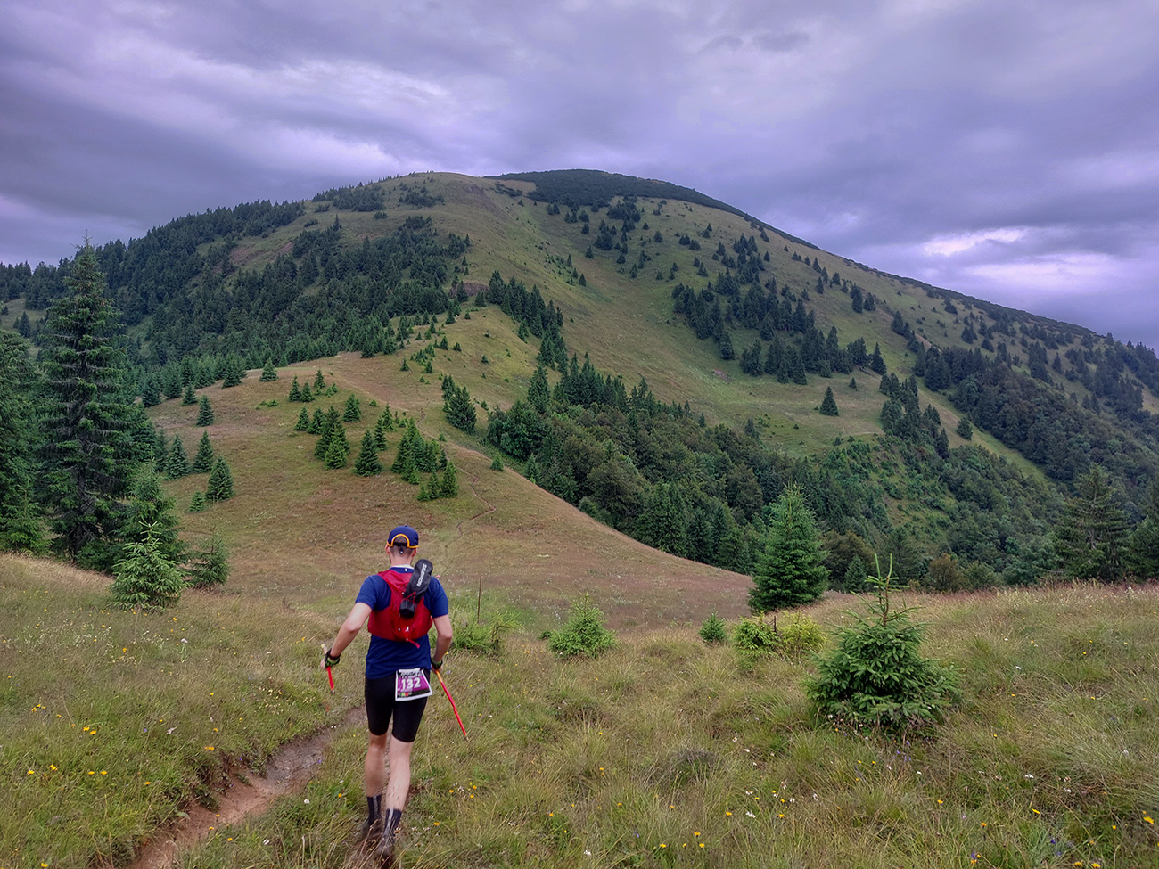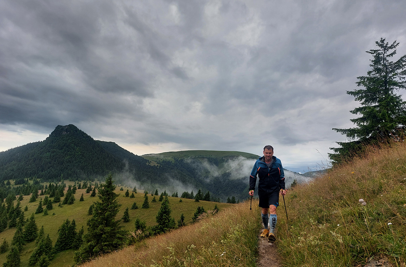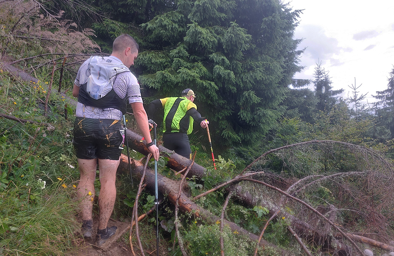 Skrátil som si to priamo cez Ploskú a zhora som sledoval, ako sa druhá čierna stena blíži z juhozápadu. Zdalo sa mi aj, že zdola od chaty nik nejde - aj som si myslel, či tam orgovia bežcov nezastavili. Ale že nie. A zas to bolo rýchle, len oproti prvej búrke o dosť intenzívnejšie, aj blesky už šľahali viac. Prečkali sme to viacerí na okraji lesa pod Čiernym kameňom, aspoň nie na otvorenom hrebeni. Len sme sa divili niektorým, ktorí úplne v pohode pokračovali práve do najhoršieho a presne na otvorené pláne smerom pod Minčol. Keď potom niektorí hovorili, ako to okolo nich bilo do zeme, až sa mne chlpy ježili.