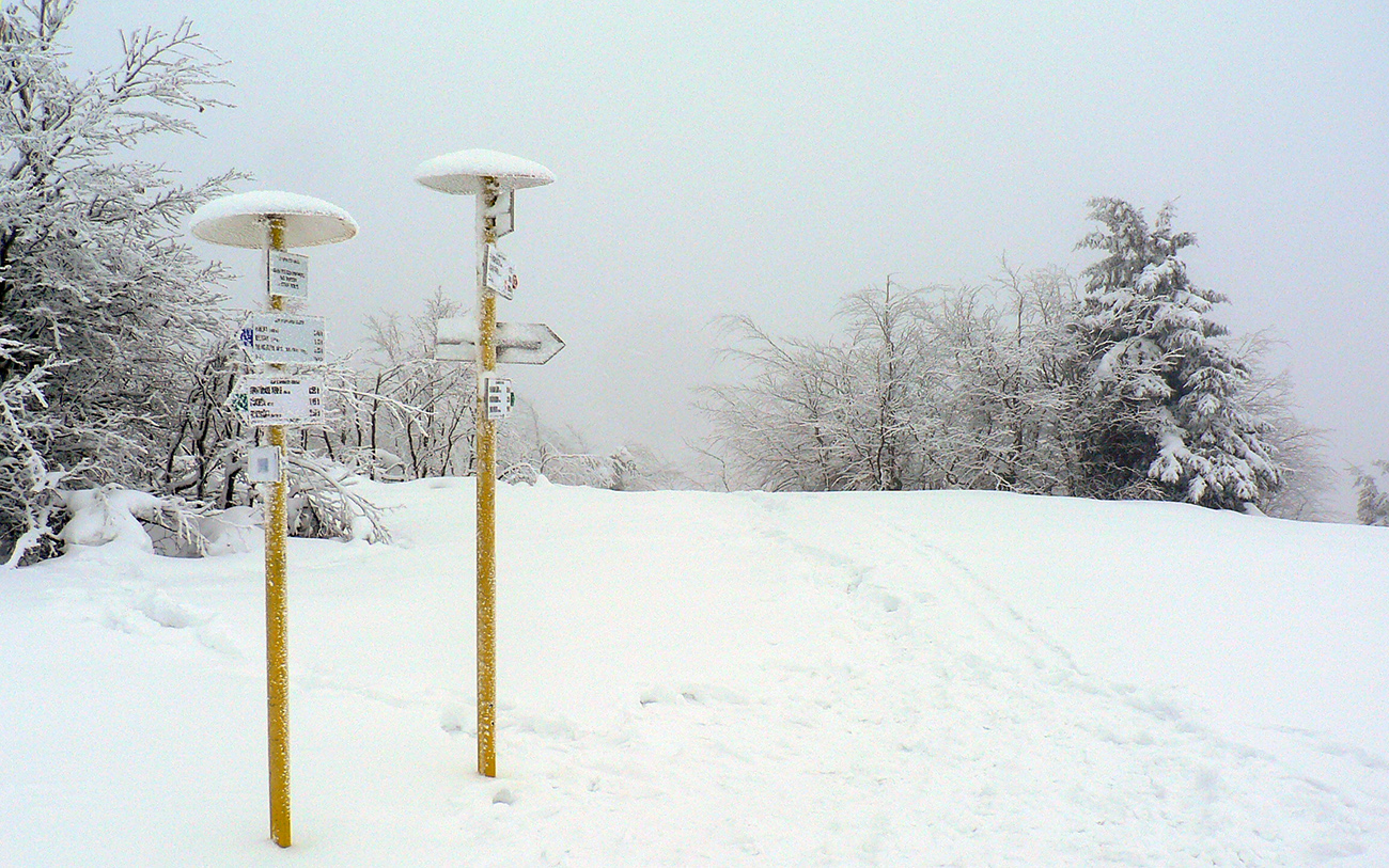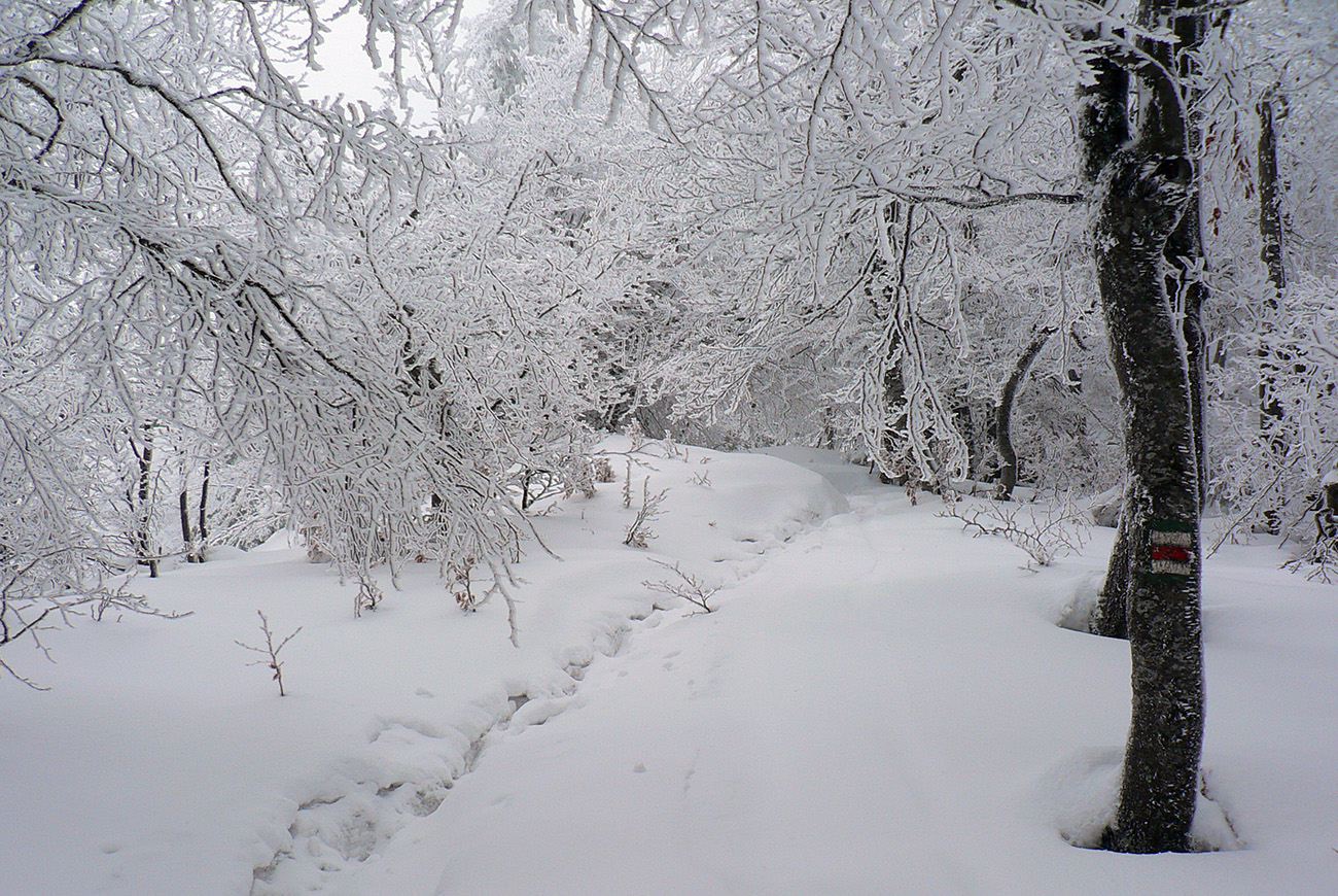 Druhá, krátka, ale príjemná lyžba v prášku od smerovníka dole do potoka. Aby som zas nemusel na pásoch kľučkovať z kopca po hrebeňovke. Od potoka som potom na červenú v pohode vytraverzoval, ani nebolo treba veľmi silno zasekávať. Ale ani sa to neborilo. Ideál aj s tým popraškom na povrchu. Na hrebeni v lese snehu tak veľa, že sa treba zohýbať, ale zas bokom sa to dá obabrať vždy komfortne, konáre moc nevystrkujú rožky spod snehu.