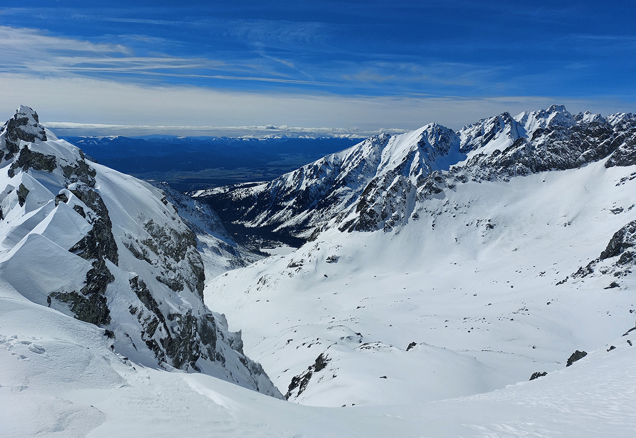 Veľkonočné horúčavy sa valili, no piatok mal byť ešte teplotne použiteľný. Nočný front čosi máličko prisnežil, zato na Popradskom už ráno nadnulovo a na hrebeňoch víchrica od západu. Tepla cez deň pribúdalo a z víchrice neubúdalo, zato dopoludnia azúro, že až plech!