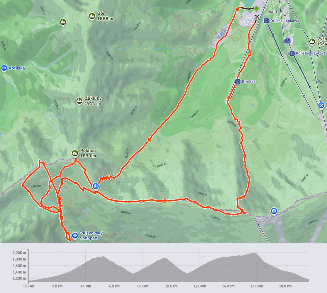 Sobota, siedmy marec, vyrazili sme do mierneho mrazíku z parkoviska P1 v Jasnej, smer Sedlo Poľany. Obloha gýčovito čistá, očakávaný úpek na južných svahoch. Severy vraj v top podmienke, uvidíme cestou hore. Plán bol okúsiť a zlyžovať takto zrána aspoň jeden juh niekde pod Kotliskami, potom pred páľavou utiecť do Derešských kotlov. Nakoniec to bolo mierne inak, ale nevadilo, aj keď nás mierne upieklo, poniektorých aj celkom na mäkko. A 2000 výškových je vraj celom dosť na takú prechádzku – no čo ja viem? Každopádne podobný nápad, ako sa dosať na hrebeň, malo v rovnakom čase doooosť veľa ľudí, ani sme sa nedivili. Lepšie ako po zjazdovkách. Keď sme potom popoludní po záverečnej zbehli dole, COROSy ukázali toto: